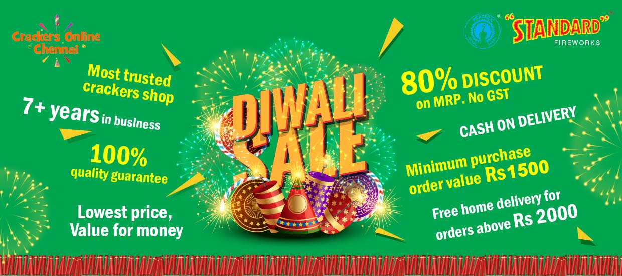 Celebrate Diwali with Standard Crackers – 80% OFF + Free home delivery for Chennai, Kanchipuram, Chengalpattu & Tiruvallur dist only . Pre-Paid for other parts of Tamil Nadu and other states are closed. Hurry – Limited stock. T&C apply. Dismiss