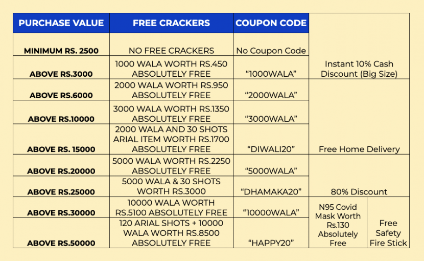 Celebrate Diwali with Standard Crackers – 80% OFF + Free home delivery for Chennai, Kanchipuram, Chengalpattu & Tiruvallur dist only . Pre-Paid for other parts of Tamil Nadu and other states are closed. Hurry – Limited stock. T&C apply. Dismiss