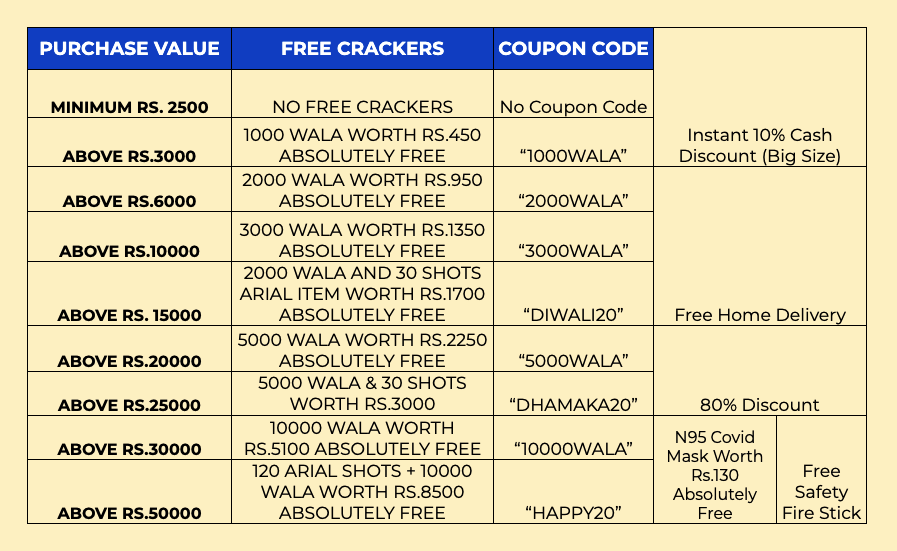 Celebrate Diwali with Standard Crackers – 80% OFF + Free home delivery for Chennai, Kanchipuram, Chengalpattu & Tiruvallur dist only . Pre-Paid for other parts of Tamil Nadu and other states are closed. Hurry – Limited stock. T&C apply. Dismiss
